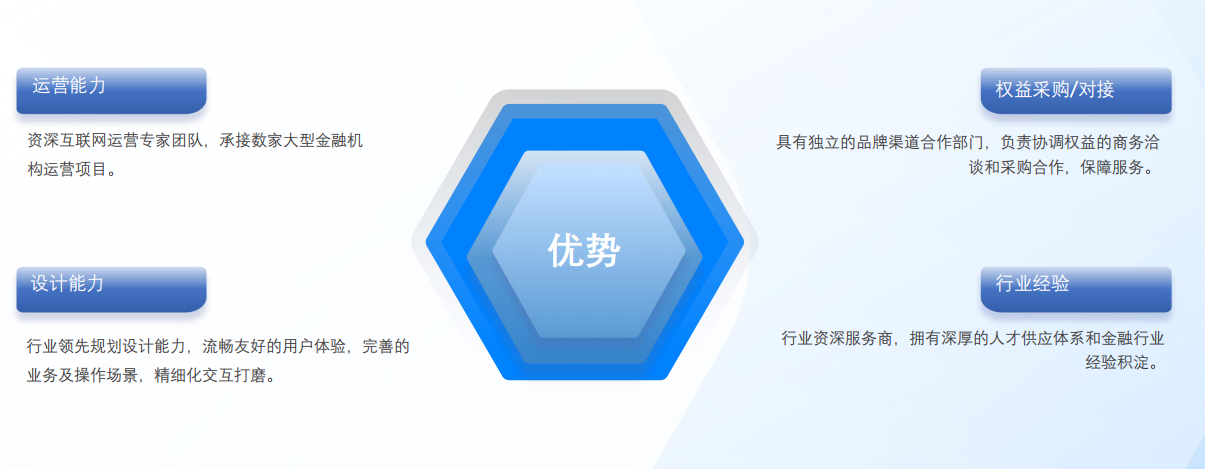 外包駐場(chǎng)服務(wù)?: 提供金融IT技術(shù)人力外包及營(yíng)銷運(yùn)營(yíng)支持,涵蓋開(kāi)發(fā)、測(cè)試、設(shè)計(jì)等領(lǐng)域。